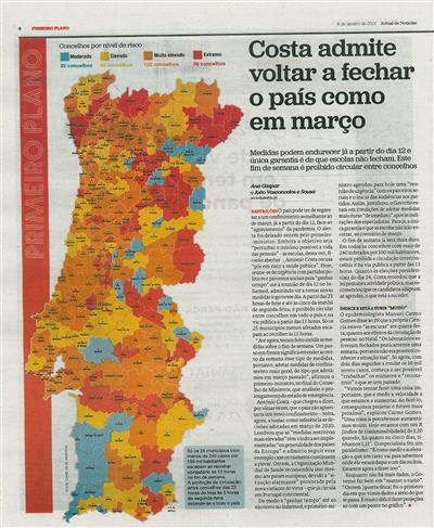 Jornal de Notícias / propr. Controlinveste Media; dir. José Leite Pereira. - Ano 133, n.º 221 (08 jan. 2021), ‘primeiro plano’, p. 4.