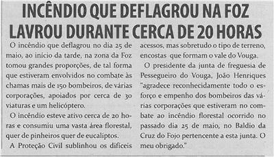 Incêndio que deflagrou na Foz lavrou durante cerca de 20 horas / Terras do Vouga