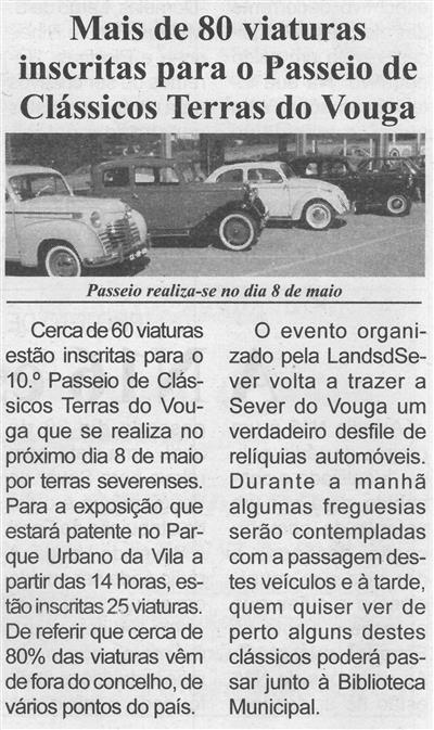 BV-N.º 1183 (1.ª quinzena maio), p. 4-Mais de 80 viaturas inscritas para o Passeio de Clássicos Terras do Vouga.jpg