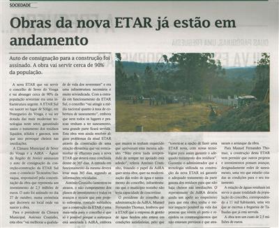 Auto de consignação da conceção e construção da ETAR Sul de Sever do Vouga ; Auto de Consignação para a construção ; Cinco milhões para saneamento ; Obras da nova ETAR já estão em andamento