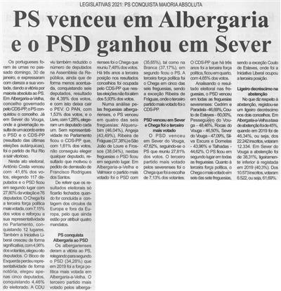 PS venceu em Albergaria e o PSD ganhou em Sever : legislativas 2021 : PS conquista maioria absoluta / Beira Vouga