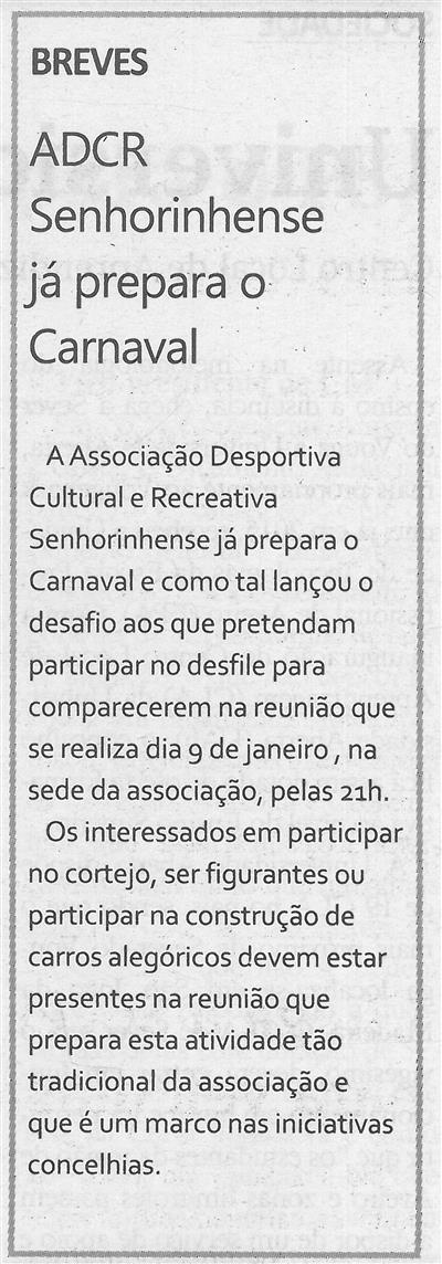 ADCR Senhorinhense já prepara o Carnaval / Terras do Vouga