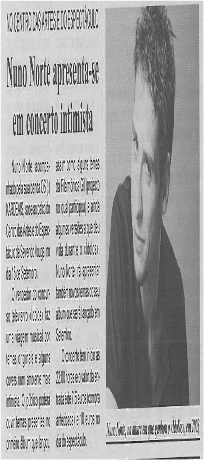 Nuno Norte apresenta-se em concerto intimista : no Centro das Artes e do Espectáculo / Fernanda Ferreira