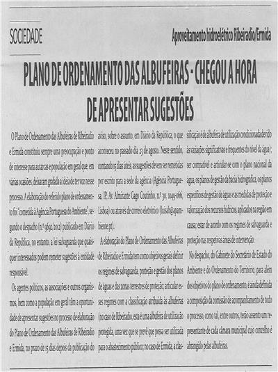 Plano de ordenamento das albufeiras : chegou a hora de aoresentar sugestões : aproveitamento hidroelétrico Ribeiradio-Ermida / Licínio Cardoso