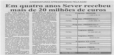 Em quatro anos Sever recebeu mais de 20 milhões de euros : candidaturas apresentadas pela AGIM / Beira Vouga