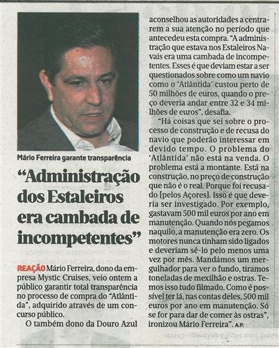 Administração dos Estaleiros era cambada de incompetentes : Mário Ferreira garante transparência / Nelson Morais