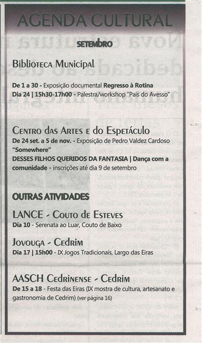 Agenda Cultural : setembro / Terras do Vouga