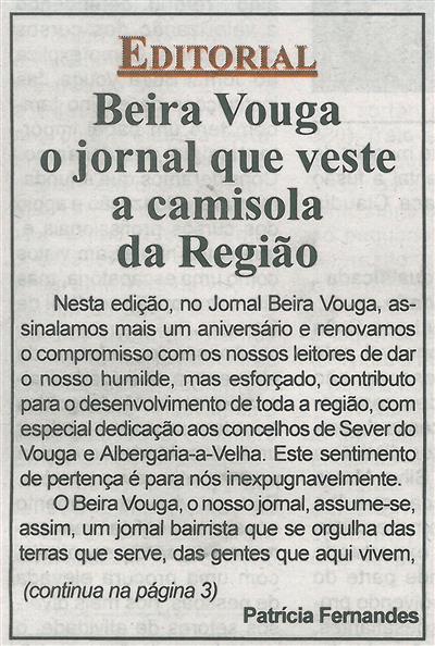 Beira Vouga [1.ª de duas partes] : o jornal que veste a camisola da Região / Patrícia Fernandes