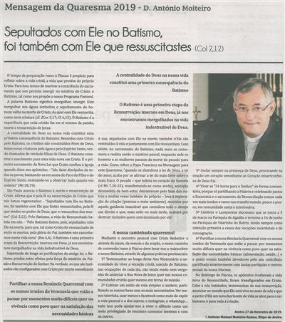 Sepultados com Ele no Batismo, foi também com Ele que ressuscitastes : mensagem da Quaresma / António Moiteiro