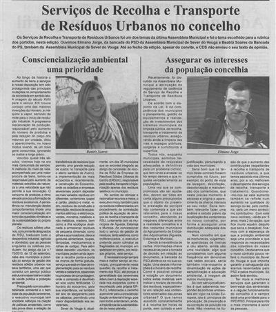 Consciencialização ambiental : uma prioridade ; Assegurar os interesses da população concelhia