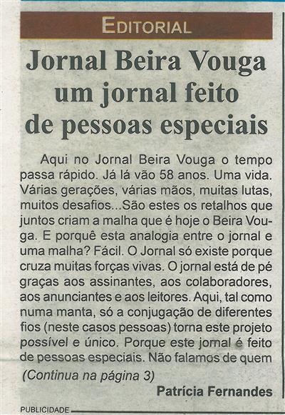 Jornal Beira Vouga um jornal feito de pessoas especiais [1.ª de duas partes] : editorial / Patrícia Fernandes