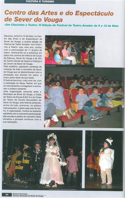 Cultura e turismo [1.ª de duas partes] : Centro das Artes e do Espetáculo de Sever do Vouga : um cheirinho a teatro : IV Edição do Festival de Teatro Amador de 9 a 12 de maio / Boletim Municipal de Sever do Vouga