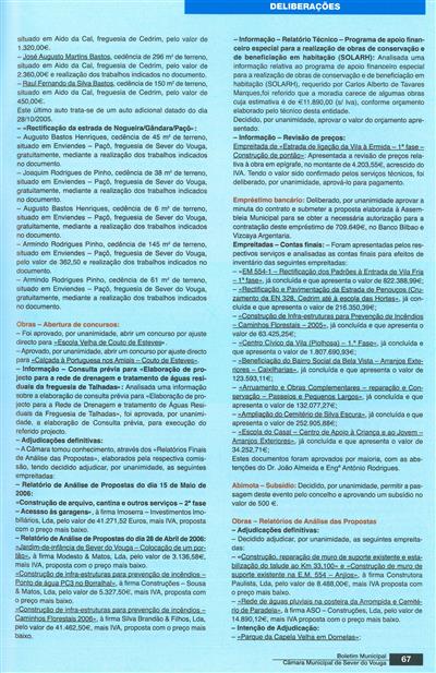 Boletim Municipal da Câmara Municipal de Sever do Vouga / propr. Município de Sever do Vouga ; dir. António José Martins Coutinho. - N.º 20, (set. 2006), p. 67.