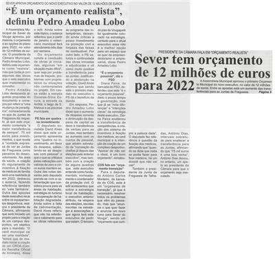 BV-N.º 1176 (2.ª quinzena jan. 2022), p. 1 e 3-Sever do Vouga aprova orçamento do novo executivo no valor de 12 milhões de euros-é um orçamento realista, definiu Pedro Amadeu Lobo.jpg