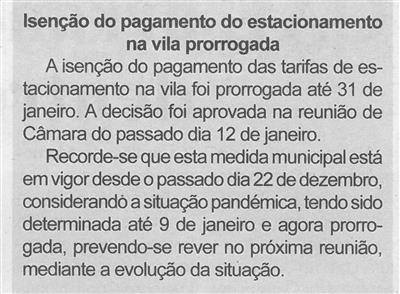 BV-N.º 1176 (2.ª quinzena jan. 2022), p. 3-Isenção do pagamento do estacionamento na vila prorrogada.jpg