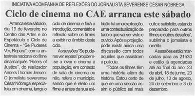 Ciclo de cinema no CAE arranca este sábado : iniciativa acompanhada de reflexões do jornalista severense César Nóbrega / Beira Vouga