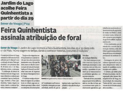 Foral de Sever do Vouga ; Feira Quinhentista ; Jardim do Lago acolhe Feira Quinhentista a partir do dia 29