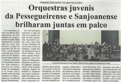 Orquestras juvenis da [Banda] Pessegueirense e Sanjoanense brilharam juntas em palco : primeiro encontro foi uma "Feliz Ideia" / Beira Vouga