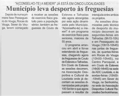 Município leva desporto às freguesias : A(conselho-te) a mexer! : já está em cinco localidades / Beira Vouga
