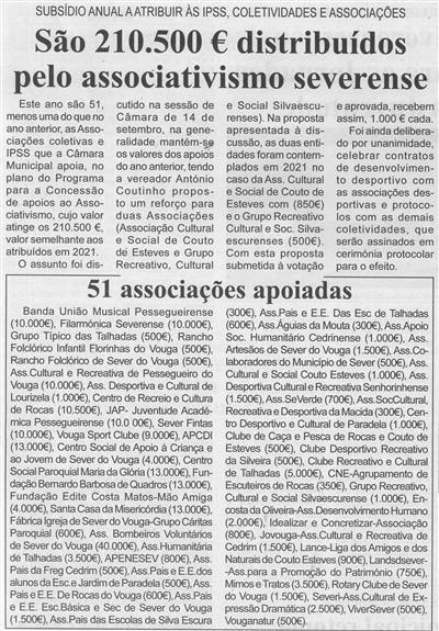 São 210.500 € distribuídos pelo associativismo severense : subsídio anual a atribuir às IPSS, coletividades e associações / Beira Vouga