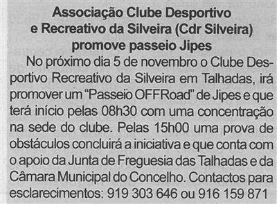 Associação Clube Desportivo e Recreativo da Silveira (CDR Silveira) promove passeio [de] Jipes / Beira Vouga