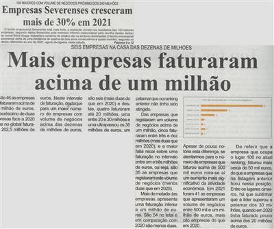 Empresas severenses cresceram mais de 30% em 2021 : 100 maiores com volume de negócios próximo dos 240 milhões