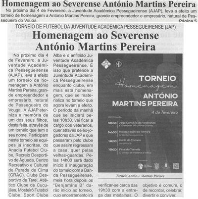 Homenagem ao severense António Martins Pereira : torneio de futebol da Juventude Académica Pessegueirense (JAP) / Beira Vouga