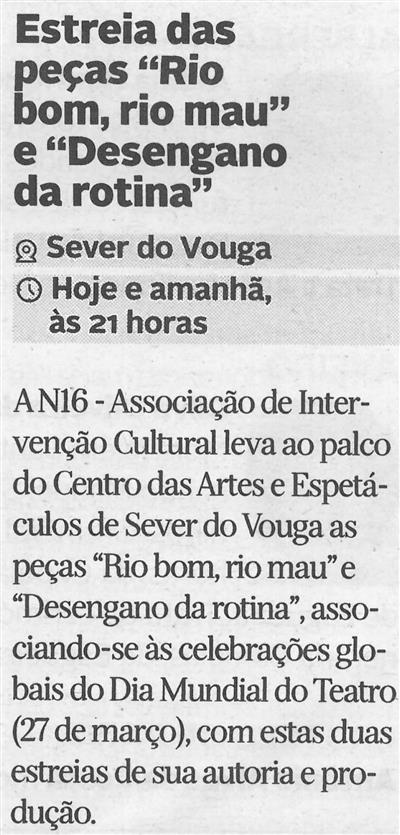 Estreia das peças Rio Bom, Rio Mau e Desengano da Rotina / Diário de Aveiro