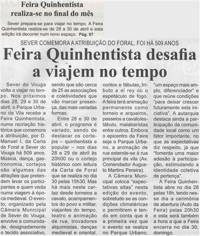 Feira Quinhentista desafia a viagem no tempo : Sever comemora a atribuição do Foral : foi há 509 anos / Beira Vouga