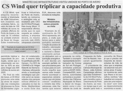 CS Wind quer triplicar a capacidade produtiva : Ministro das Infraestruturas visitou unidade no Porto de Aveiro / Beira Vouga