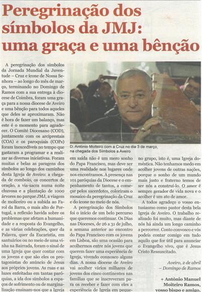 Peregrinação dos símbolos da JMJ : uma graça e uma bênção / António Manuel Moiteiro Ramos