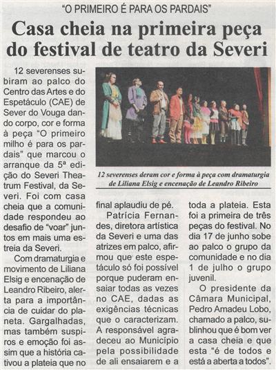 Casa cheia na primeira peça do Festival de Teatro da Severi : O Primeiro é para os Pardais / Beira Vouga