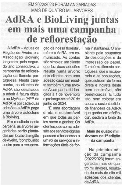AdRA e BioLiving juntas em mais uma campanha de reflorestação : em 2022-2023 foram angariadas mais de quatro mil árvores / Beira Vouga