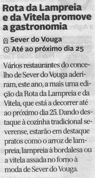 Rota da Lampreia e da Vitela promove a gastronomia : Sever do Vouga / Diário de Aveiro