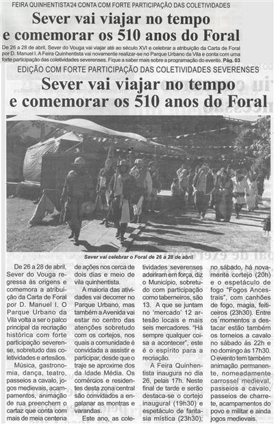 BV-N.º 1225 (2.ª quinzena abril), p. 1 e 3-Sever vai viajar no tempo e comemorar os 510 anos do Foral.jpg