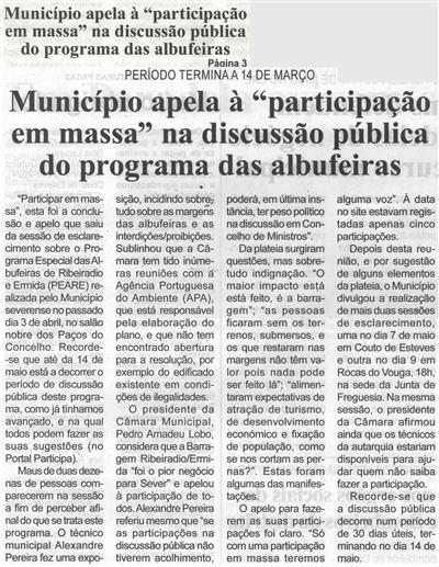 Município apela à "participação em massa" na discussão pública do programa das albufeiras : período termina a 14 de março / Beira Vouga