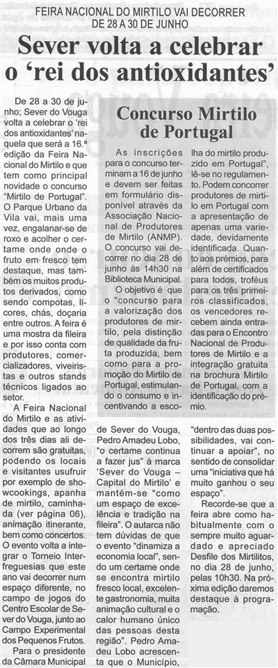 Sever volta a celebrar o 'rei dos antioxidantes' : Feira Nacional do Mirtilo vai decorrer de 28 a 30 de junho / Beira Vouga