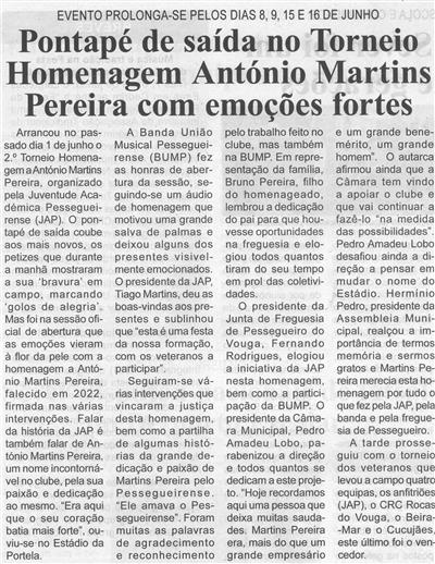 Pontapé de saída no Torneio Homenagem António Martins Pereira com emoções fortes : evento prolonga-se pelos dias 8, 9, 15 e 16 de junho / Beira Vouga