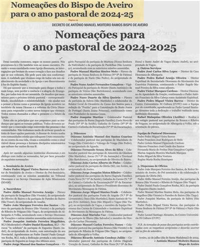 Nomeações do Bispo de Aveiro para o ano pastoral de 2024-25 ;