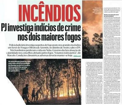 Incêndios [2.ª parte de duas] : PJ investiga origem dos fogos de Sever do Vouga e Oliveira de Azeméis por suspeita de ação humana / Rui Miguel Godinho