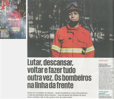 Lutar, descansar, voltar e fazer tudo outra vez [1.ª de quatro partes] : os bombeiros na linha da frente / Patrícia Carvalho, Maria José Santana; fotogr. Paulo Pimenta