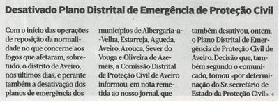Desativado Plano Distrital de Emergência de Proteção Civil / Diário de Aveiro