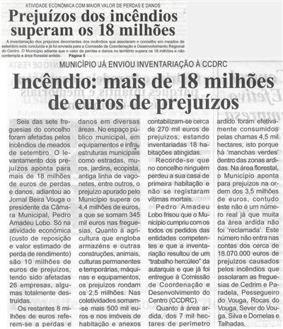 Incêndio : mais de 18 milhões de euros de prejuízos : Município já enviou inventariação à CCDRC / Beira Vouga