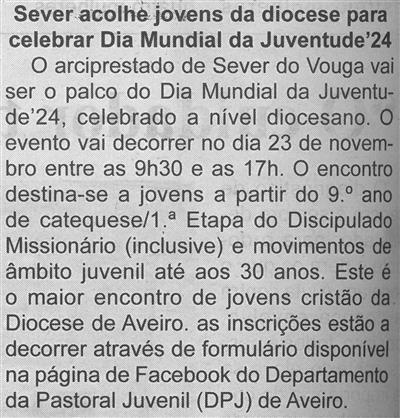 Sever acolhe jovens da diocese para celebrar Dia Mundial da Juventude'24 / Beira Vouga