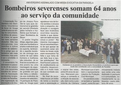 Bombeiros severenses somam 64 anos ao serviço da comunidade : aniversário assinalado com missa evocativa em Paradela / Beira Vouga