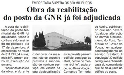 Obra de reabilitação do posto da GNR já foi adjudicada : empreitada supera os 800 mil euros / Beira Vouga