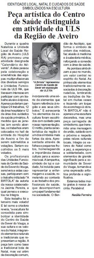 BV-N.º 1242 (1.ª quinzena fev. 2025), p. 4-Peça artística do Centro de Saúde, distinguida em atividade da ULS da Região de Aveiro.JPG