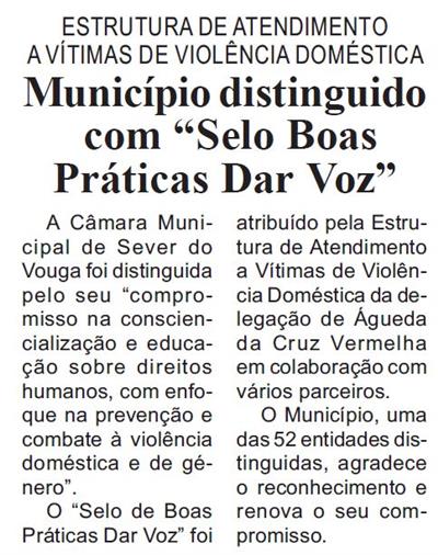 Município distinguido com "Selo Boas Práticas Dar Voz" : Estrutura de Atendimento a Vítimas de Violência Doméstica / Beira Vouga