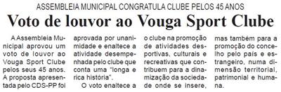 Voto de louvor ao Vouga Sport Clube : Assembleia Municipal congratula clube pelos 45 anos / Beira Vouga