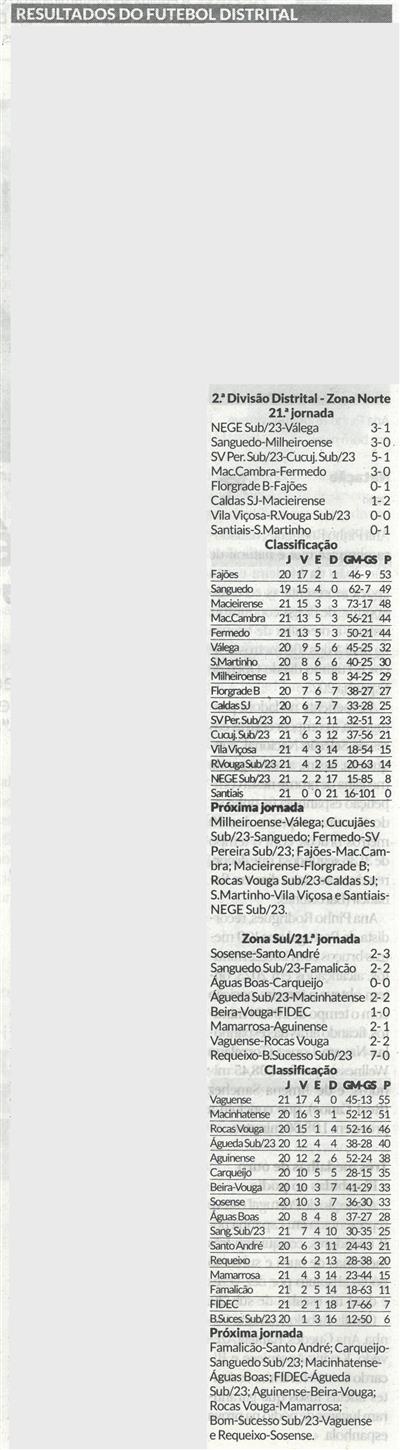 Resultados do futebol distrital : II Divisão Distrital : Zona Norte : Zona Sul / Diário de Aveiro